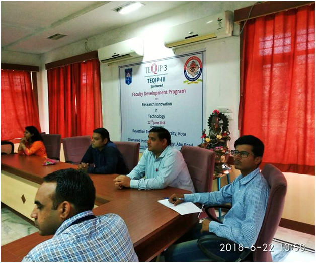 In June 2019, a faculty development program focused on the research innovation was held. Participants learned about the aspects and modern research areas and how one can foster in innovations. This FDP was mentored by prominent speakers from Singapore University, IIT, and NIT. The program included various key note speaker session for better exposure to research methods. Overall, participants gained a comprehensive understanding of research basics and the skills needed to design and develop innovative solution in their respective engineering fields.