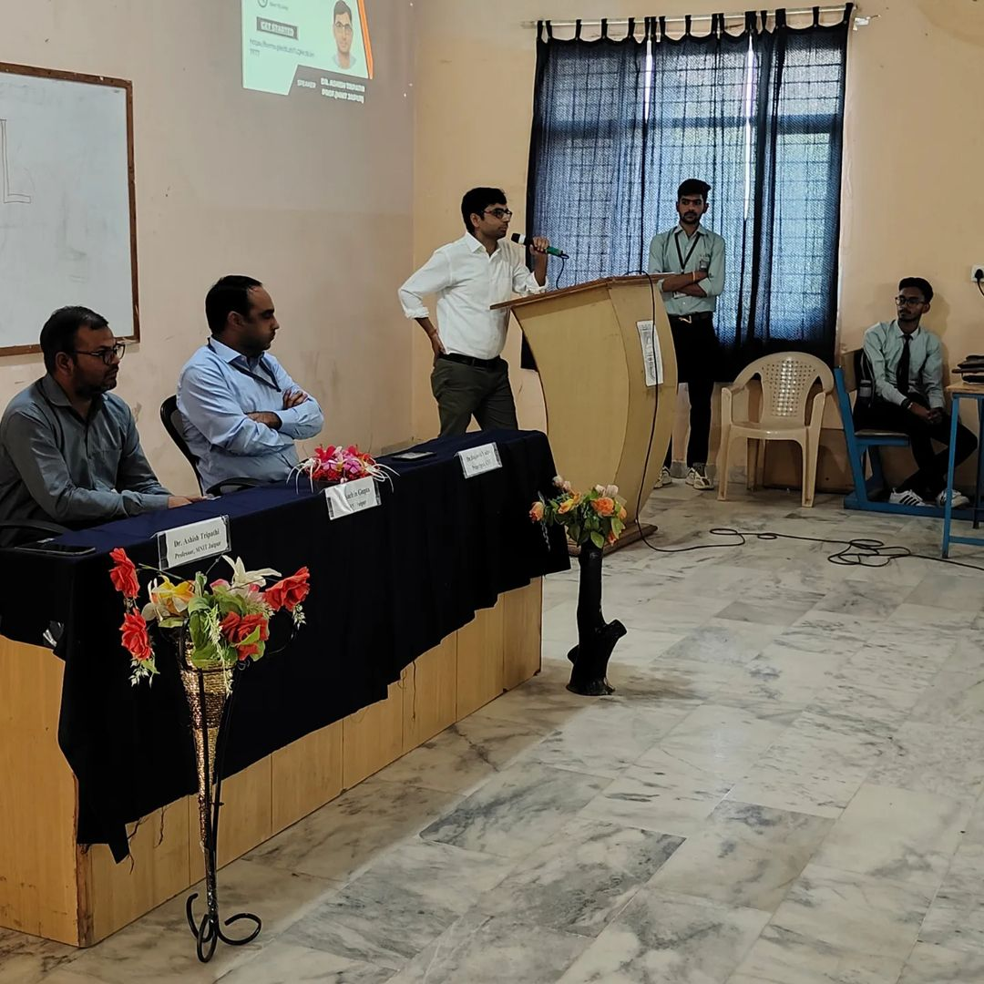 Recently we have witnessed a midfull session on "recent trends in Artificial Intelligence". This session was chaired and guided by honorable professor Dr. Pushpendra Singh. JKLU and Dr Deepak Sharma. Arya college. Event start with lightning of the lamp ceremony. First session was taken by Dr. Pushpendra Singh. He enlightened students and faculties about artificial intelligence and it's implications. 2nd session was conducted by Dr Deepak Sharma. He also delivered a fun filled interactive lecture on future and role of Al in engineering fields.